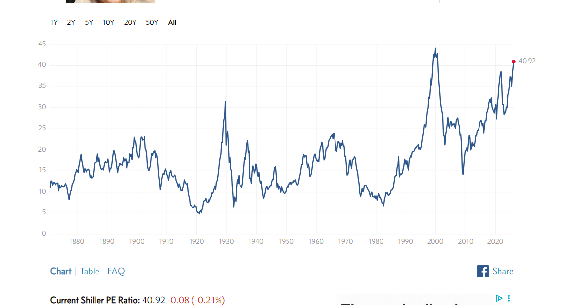 Gold has risen 54% in 2025 as a safety haven while Bitcoin (digital gold) face a significant collapse recently and stocks have risen for several years to high valuations as measured by Case Shiller PE, dividend yield and other metrics.